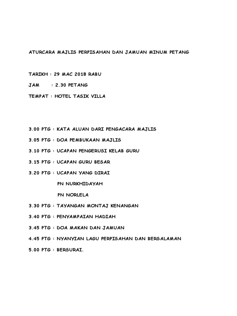 Aturcara Majlis Perpisahan Dan Jamuan Makan Hari Guru