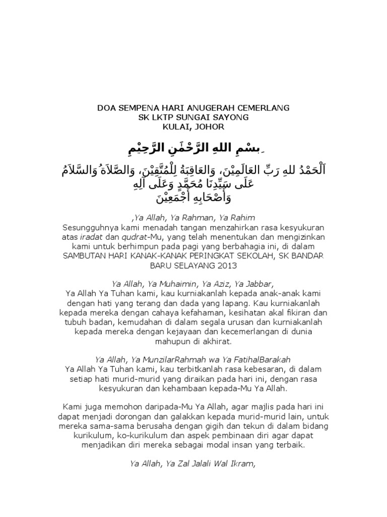 Doc Doa Sempena Hari Anugerah Kecemerlangan Mohd Rahmat Academia Edu